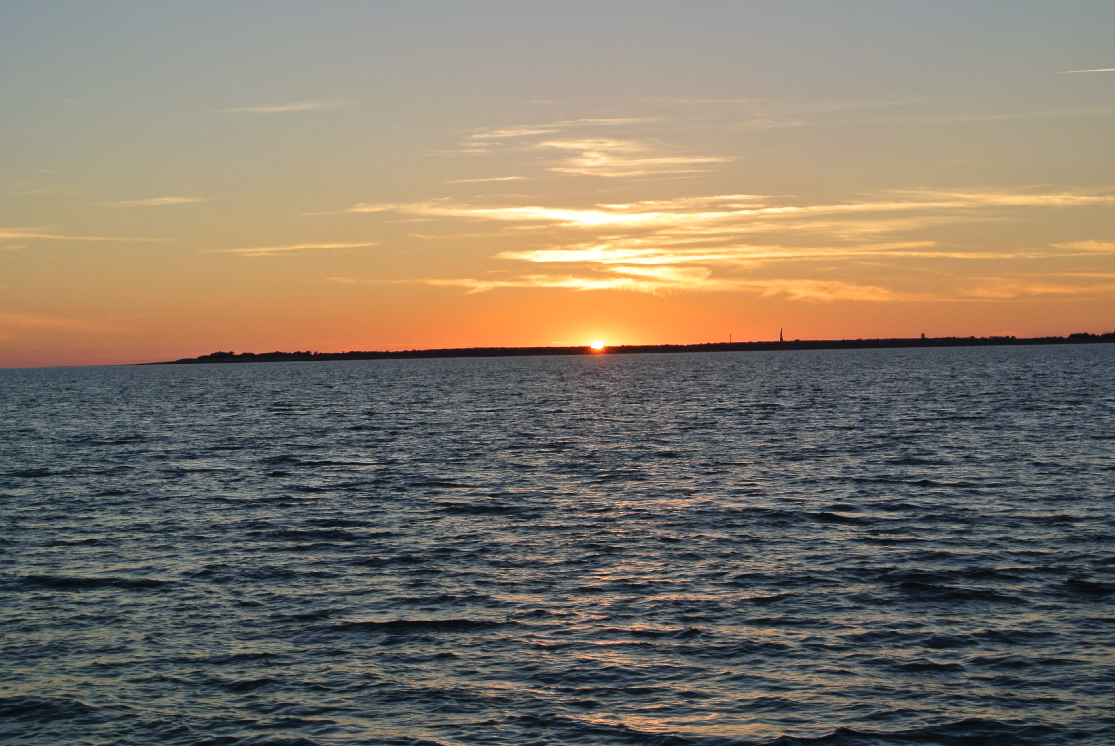 After a 5 hour sail we arrived off the Ile de Re’, just in time to anchor for the night and enjoy our first sunset.