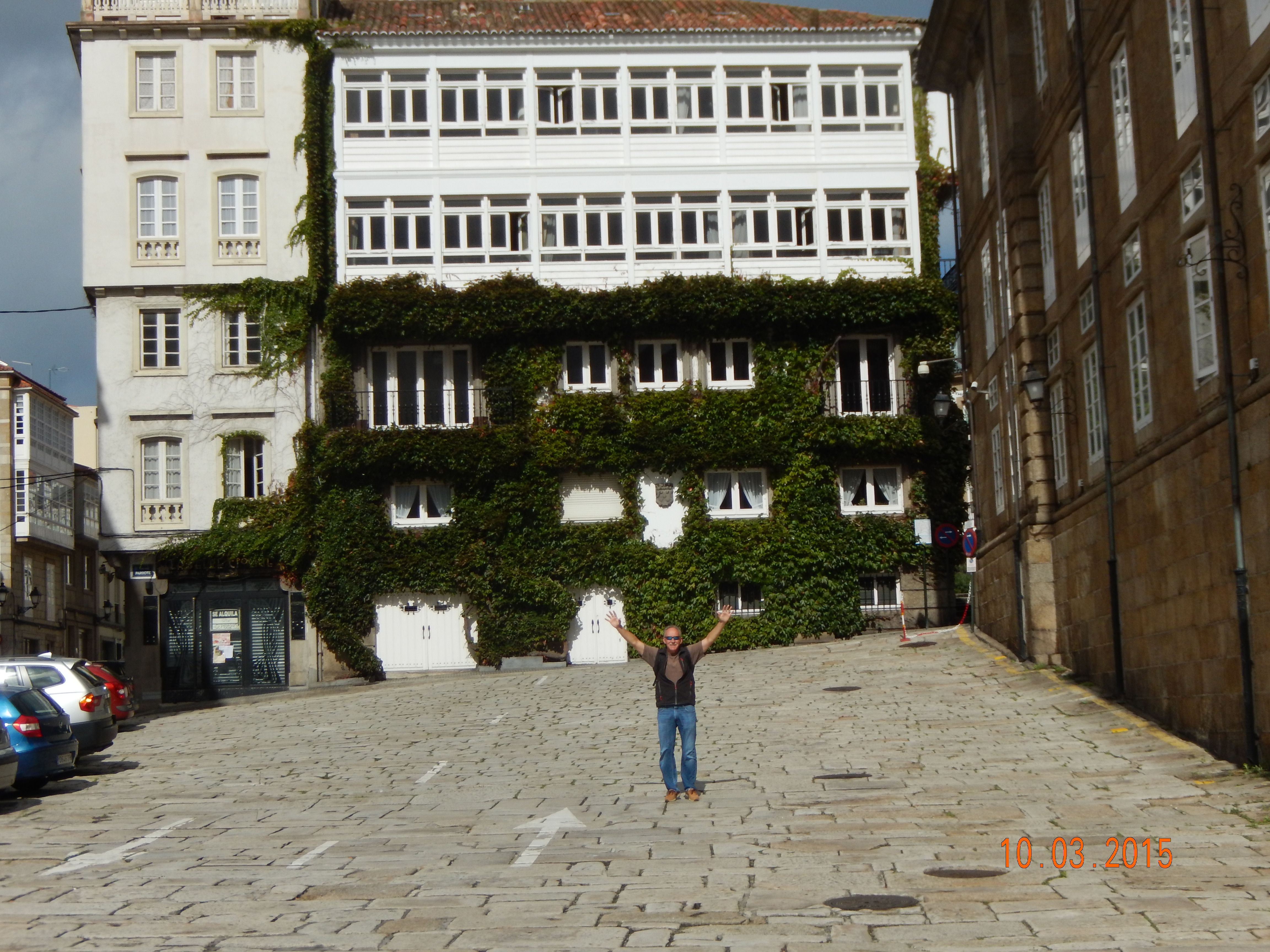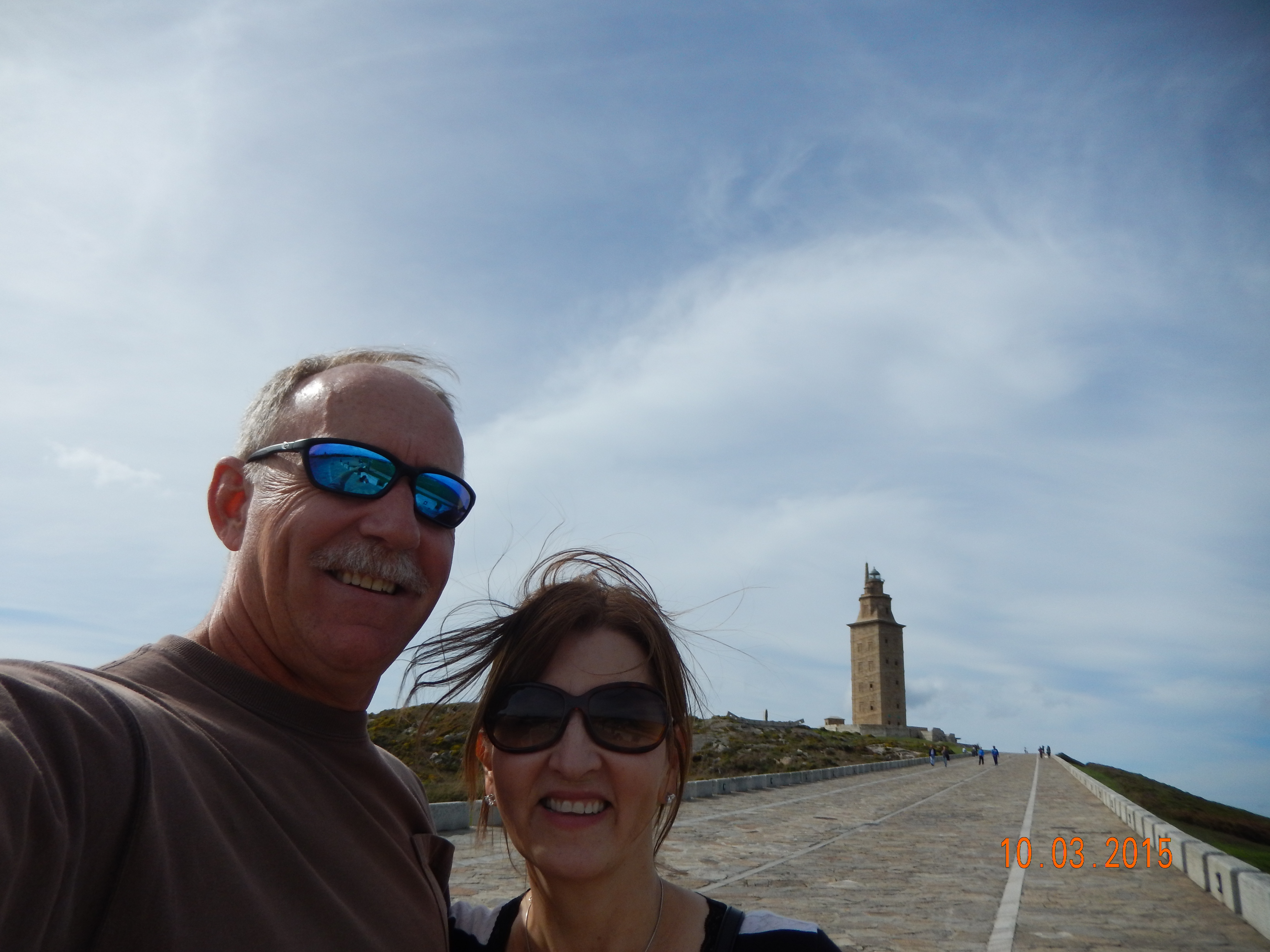Selfie of the town of La Coruna in the background.