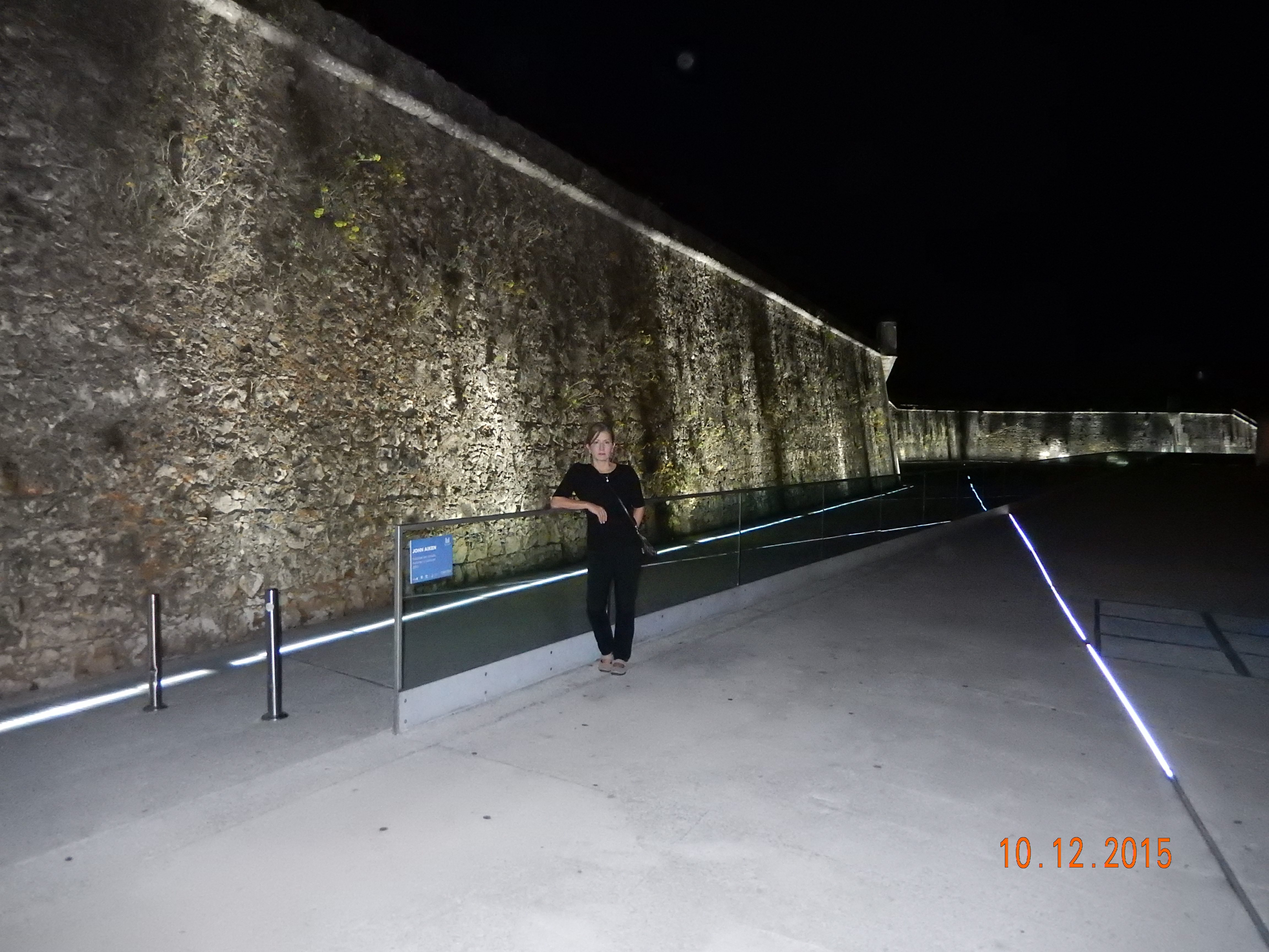Our first evening in Cascais. Teresa outside the Cidadela (1580-1598) walls.