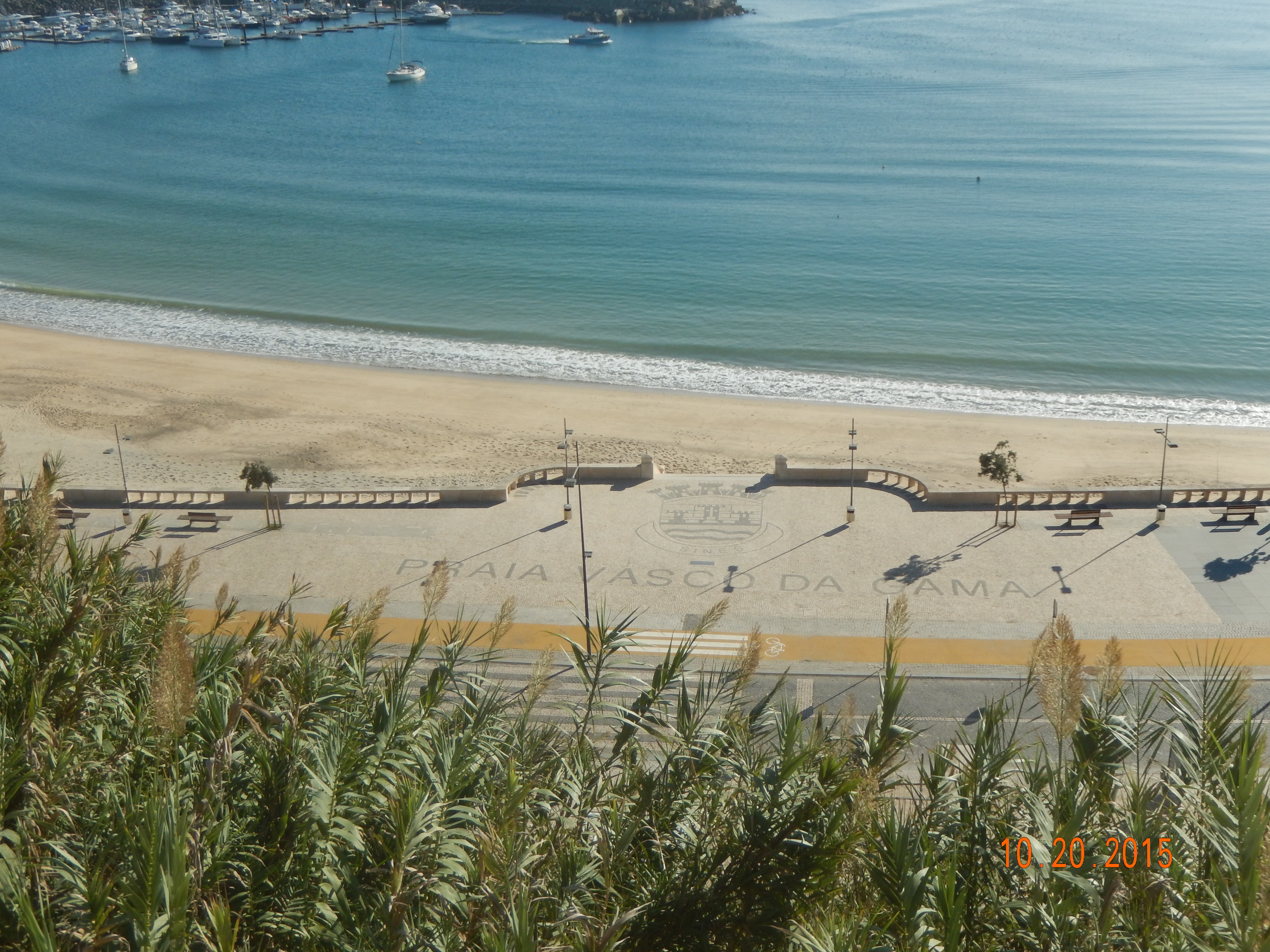 A statue to the memory of the great Portuguese explorer Vasco de Gama, over looking the harbor and sea.