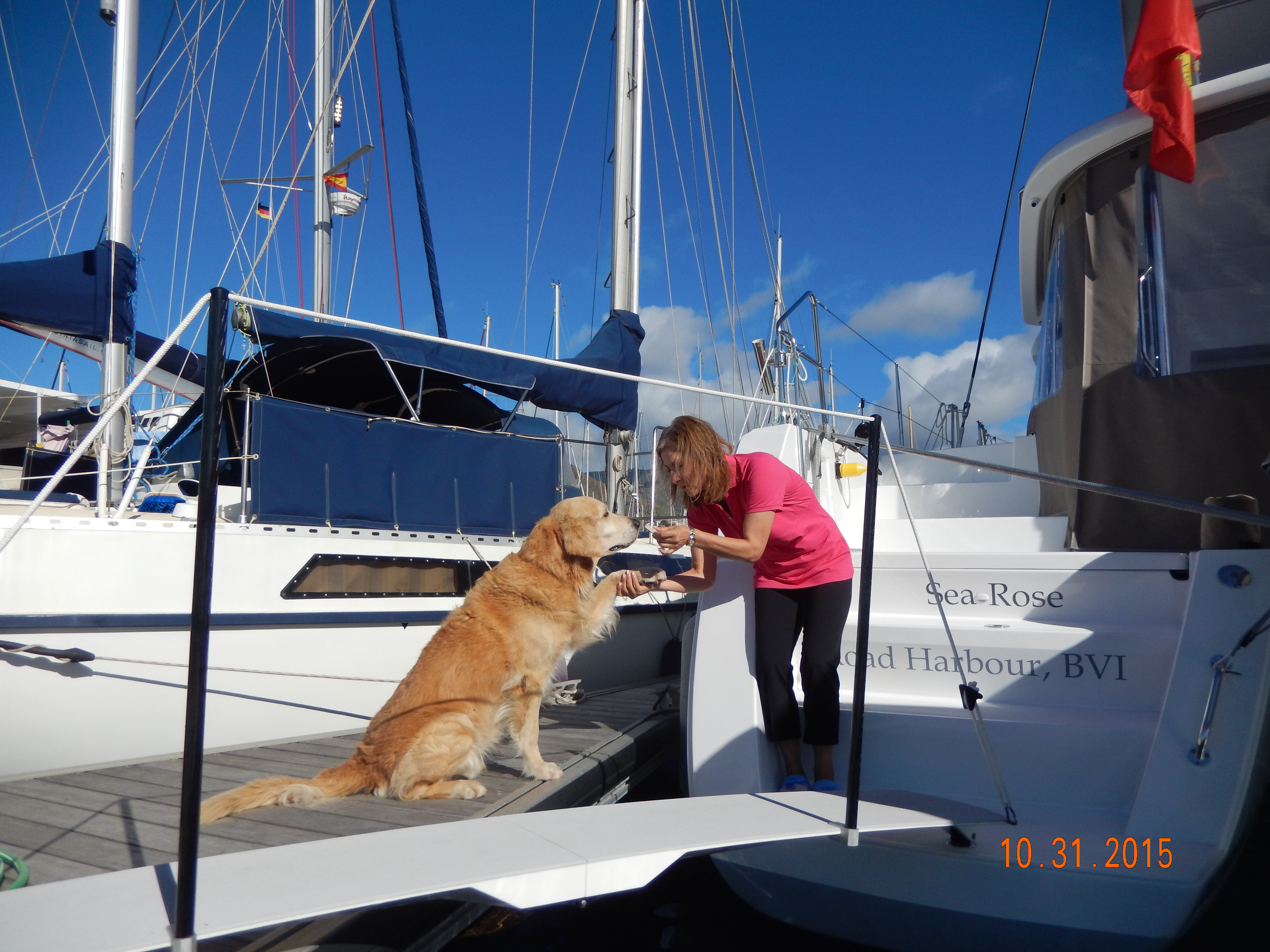 Teresa spoiling the neighbor’s dog with treats.
