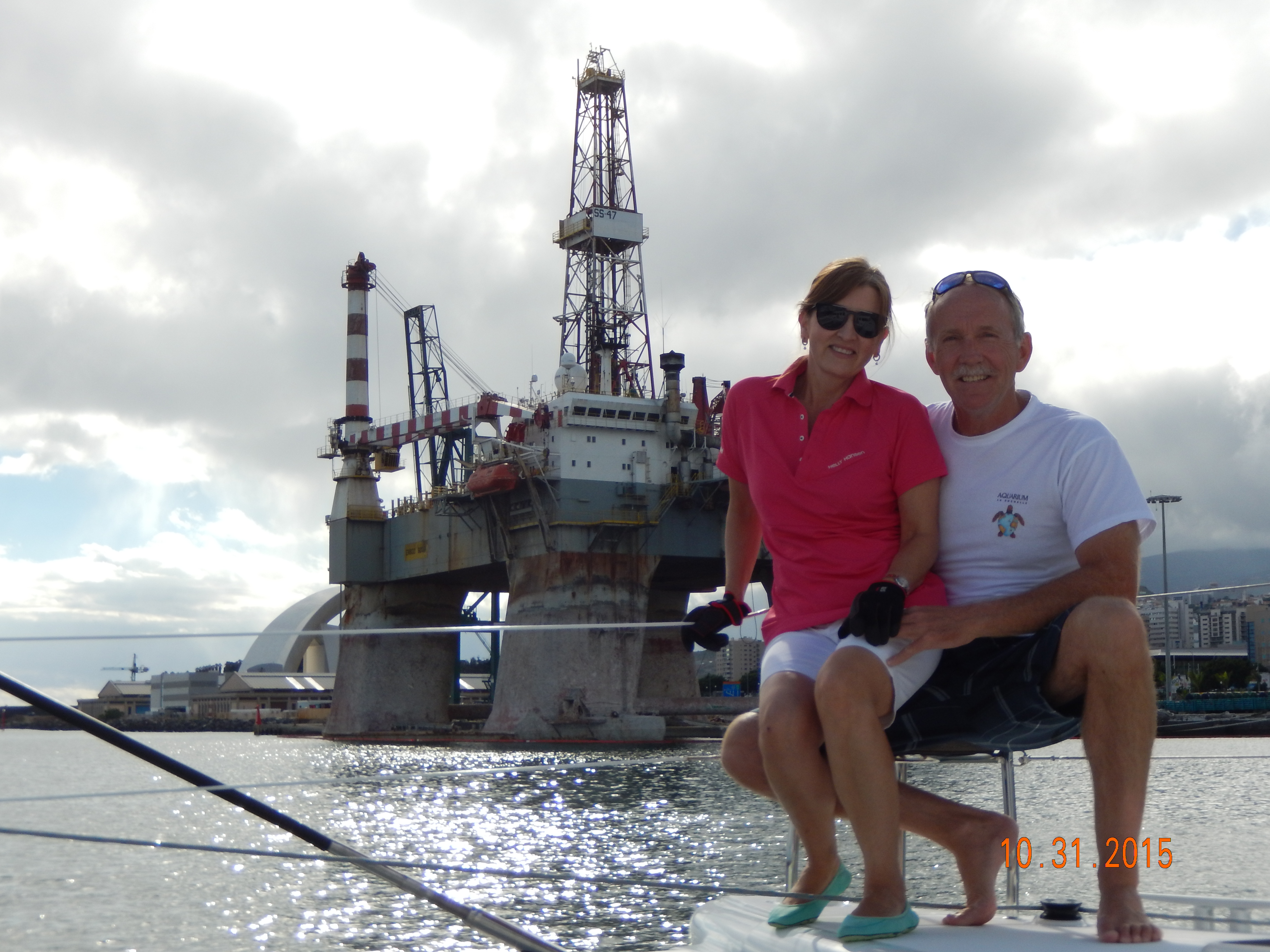 Departing Santa Cruz harbor via the idle drilling platforms.