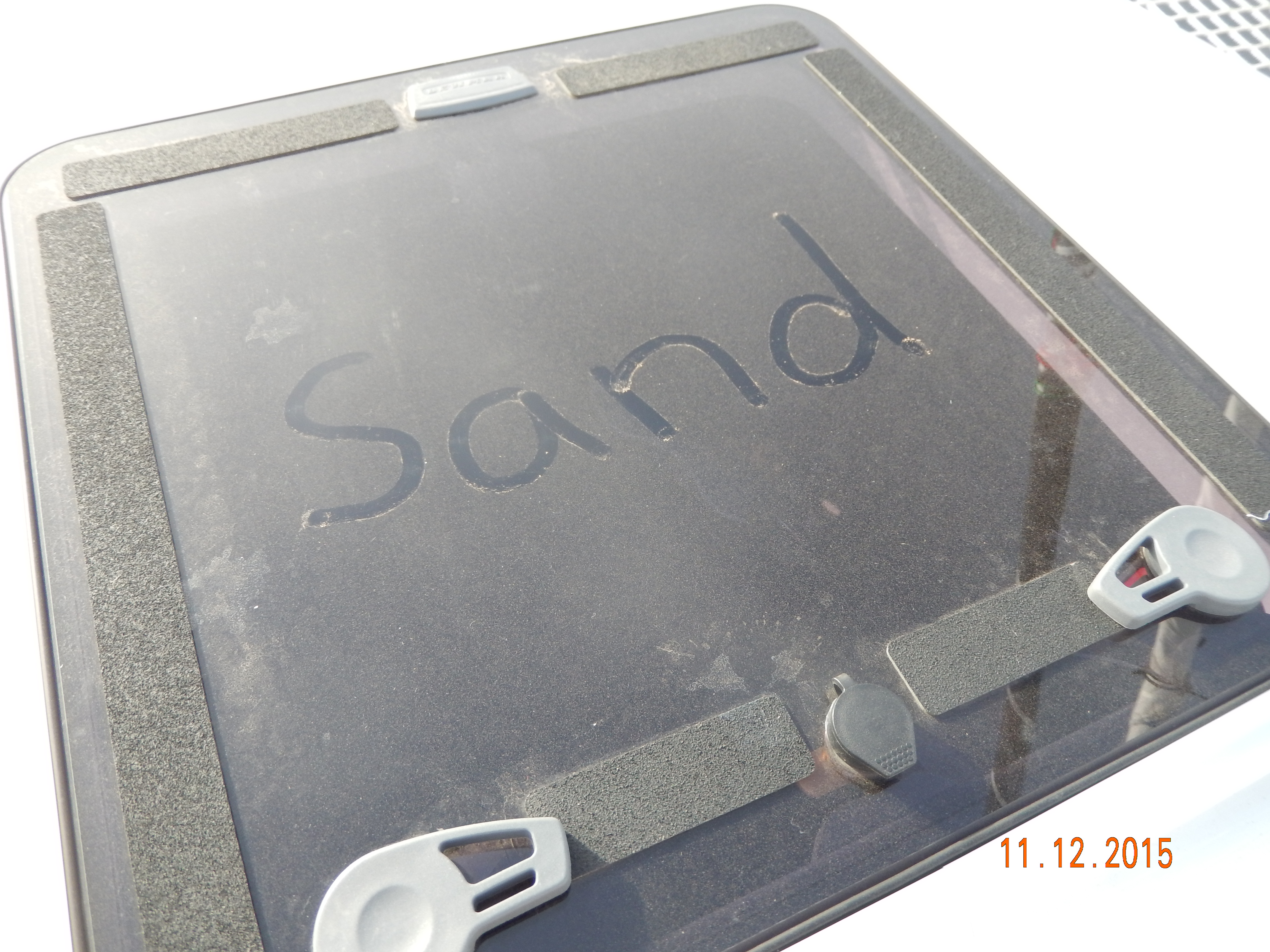 Sea Rose has been blanketed with fine sand for the last few days. (forward hatch)