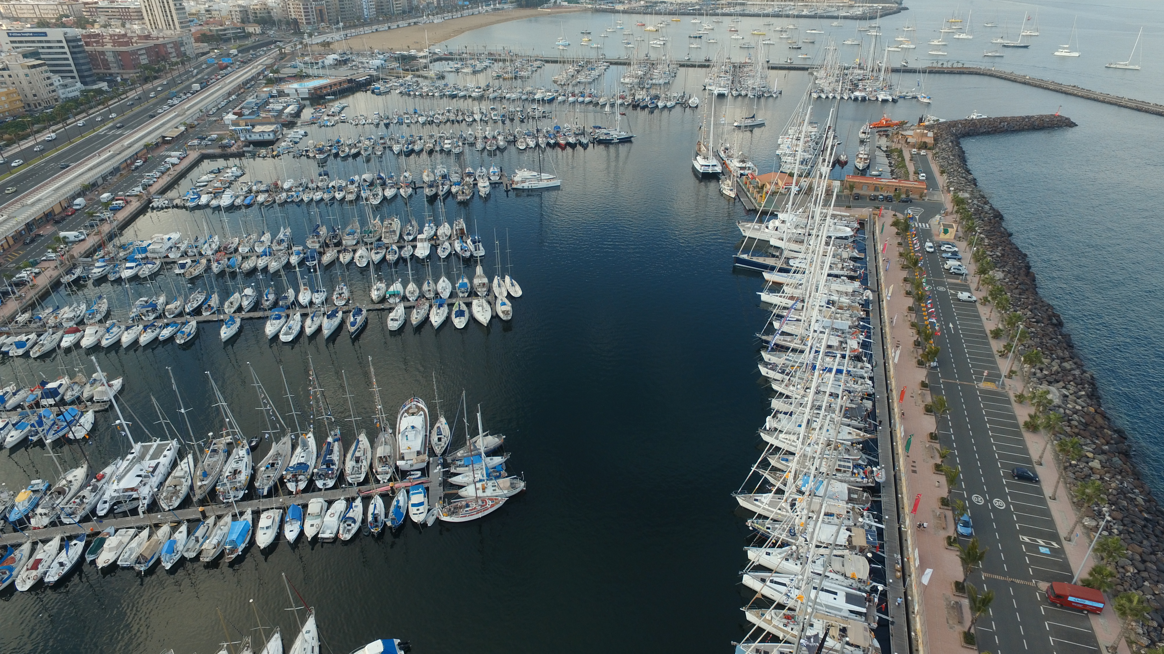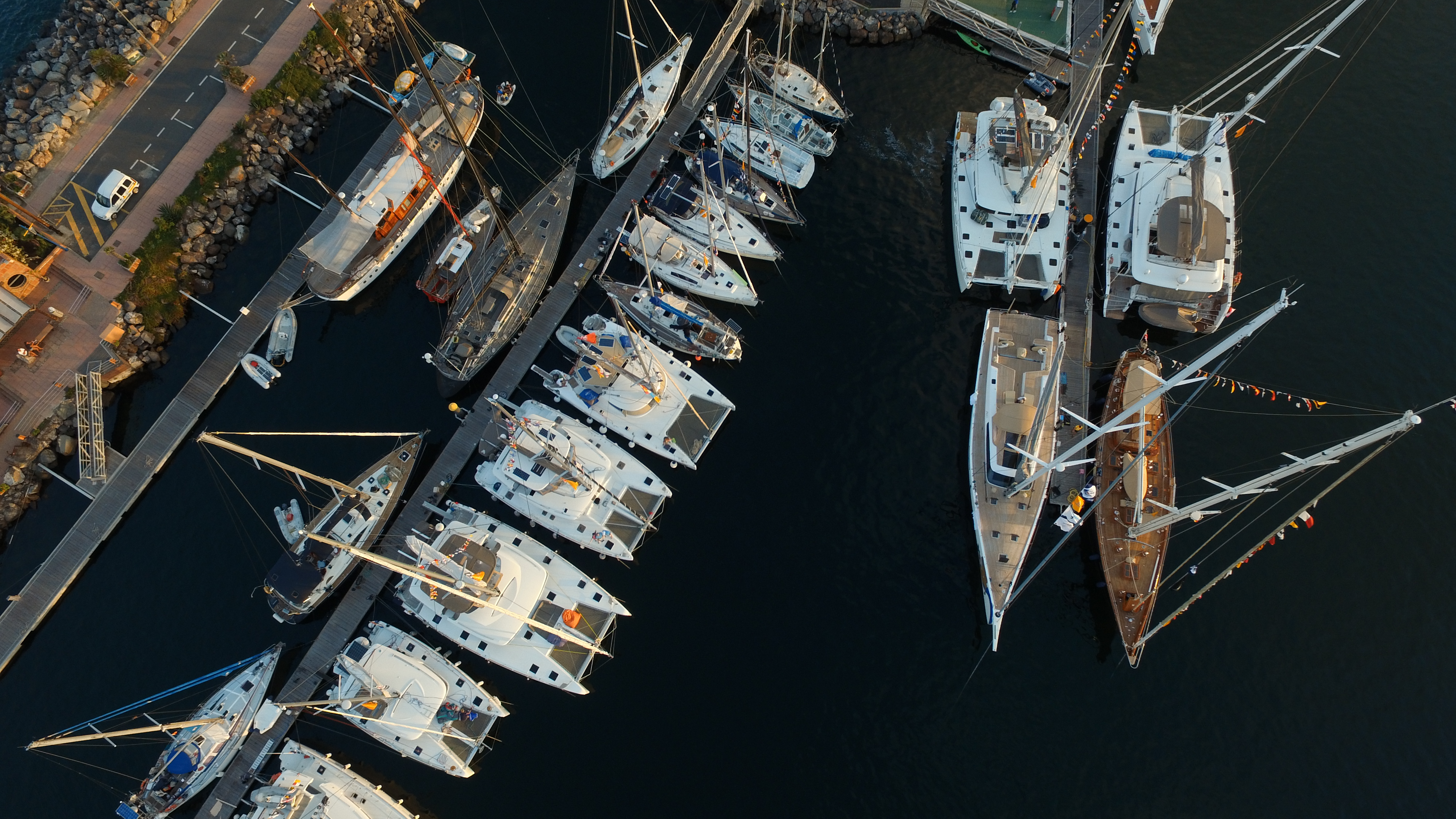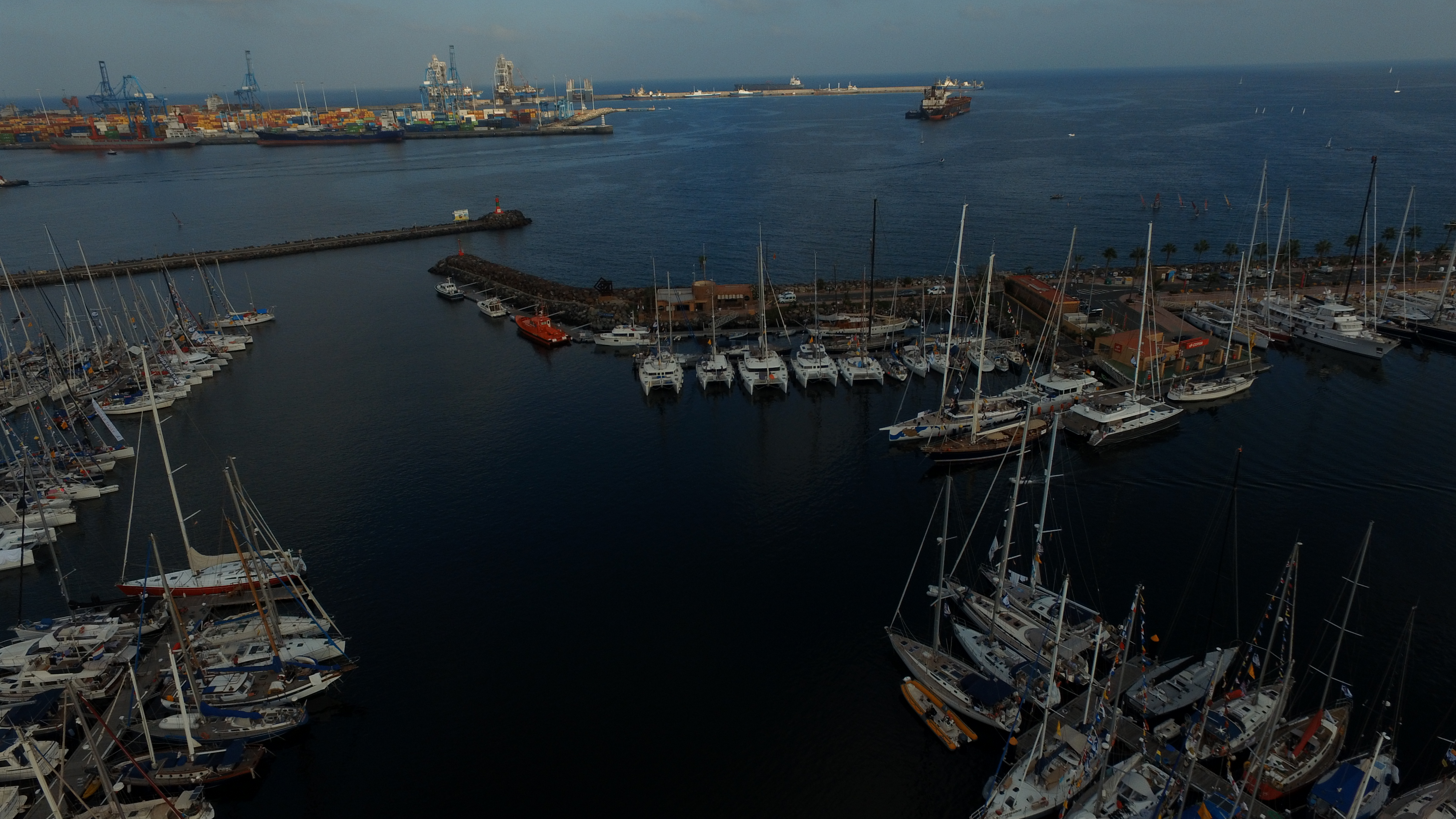 View of the marina from Larry’s drone. The racing boats are all along the sea wall.